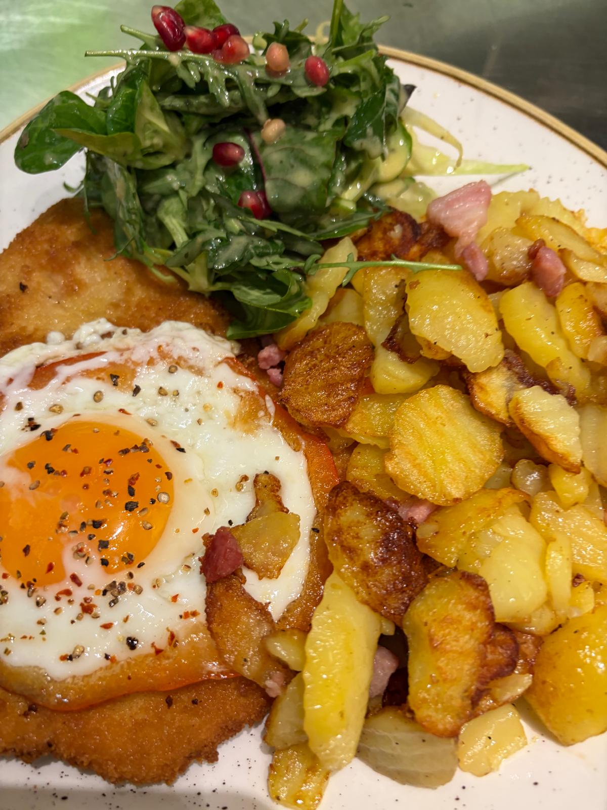 mit Spiegelei & Bratkartoffeln, Salat
